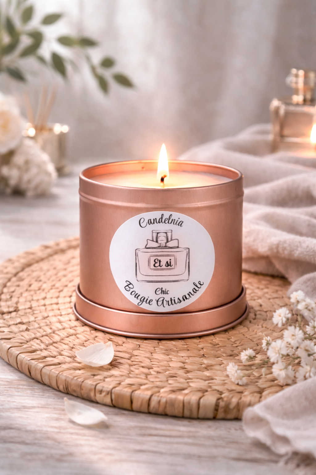 Laissez-vous séduire par la bougie Et Si, une fragrance inspirée d’un célèbre parfum de luxe, à la fois élégante, moderne et envoûtante.
