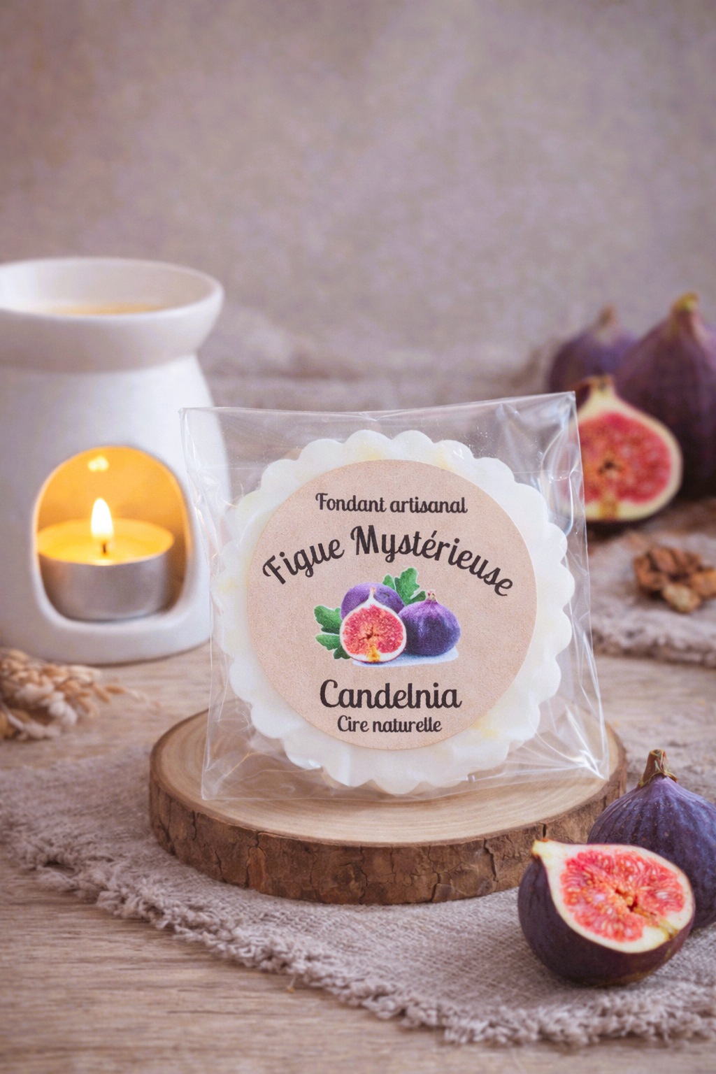 Mettre la tartelette ou la moitié dans un brûleur. Allumez la bougie chauffe plat et laissez diffuser.