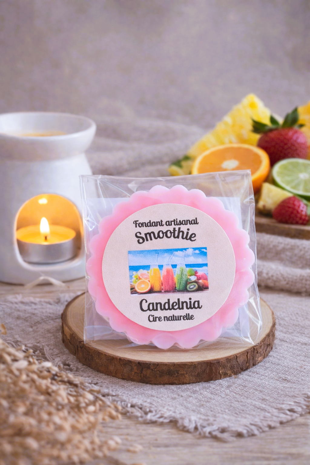 Mettre la tartelette ou la moitié dans un brûleur. Allumez la bougie chauffe plat et laissez diffuser.